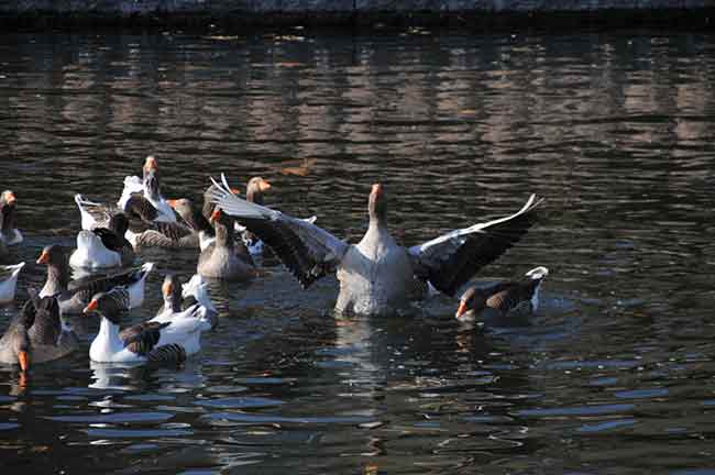 Sokaklarda bulunan kedi ve köpeklerin yanı sıra Porsuk Çayı'ndaki kazlar görsel şov oluşturdu.