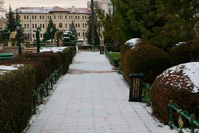 Porsuk Bulvarı'nda kar etkisini göstermeye başladı.