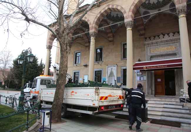 Eskişehir Büyükşehir Belediyesi'nin Korona Virüs ile Eylem Planı kapsamında alınan önlemlere birisi daha eklendi. Reşadiye bölgesi, Taşbaşı Bölgesi, İki Eylül Caddesi ve İsmet İnönü Caddesi başta olmak üzere birçok noktada özellikle risk grubunda bulunan 60 yaş üzeri vatandaşların kullandığı banklar geçici süreyle kaldırıldı.