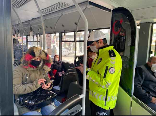 Eskişehir Trafik Denetleme Şube Müdürlüğü ekipleri toplu taşıma araçları ve taksilerde Korona virüs (Covid-19) tedbirleri kapsamında denetim gerçekleştirdi