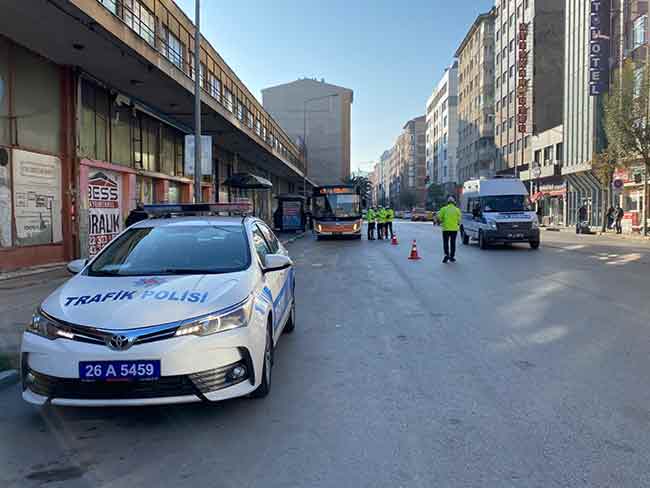 Eskişehir'in Yunus Emre Caddesinde yapılan kontrollerde bir çok otobüs ve dolmuş durduruldu.