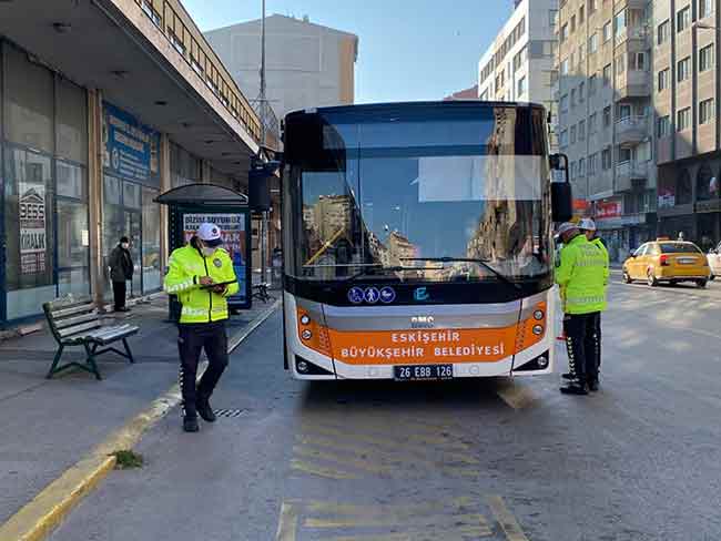 Eskişehir Trafik Denetleme Şube Müdürlüğü ekipleri toplu taşıma araçları ve taksilerde Korona virüs (Covid-19) tedbirleri kapsamında denetim gerçekleştirdi