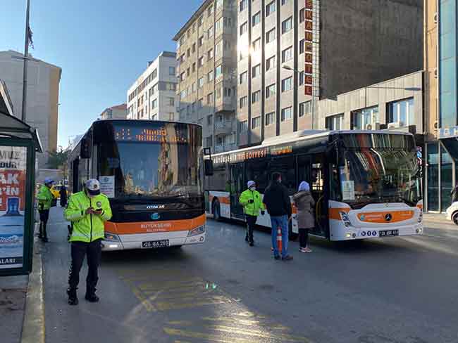 Eskişehir Trafik Denetleme Şube Müdürlüğü ekipleri toplu taşıma araçları ve taksilerde Korona virüs (Covid-19) tedbirleri kapsamında denetim gerçekleştirdi