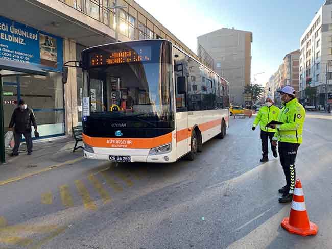 Eskişehir Trafik Denetleme Şube Müdürlüğü ekipleri toplu taşıma araçları ve taksilerde Korona virüs (Covid-19) tedbirleri kapsamında denetim gerçekleştirdi