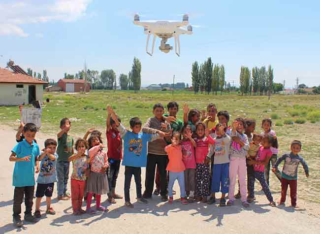 Eskişehir'e Şanlıurfa'dan mevsimlik işçi olarak gelen ailelerin çocuklarının, hayatlarında ilk kez drone görmesiyle yaşadıkları şaşkınlık ve sevinç kameralara yansıdı