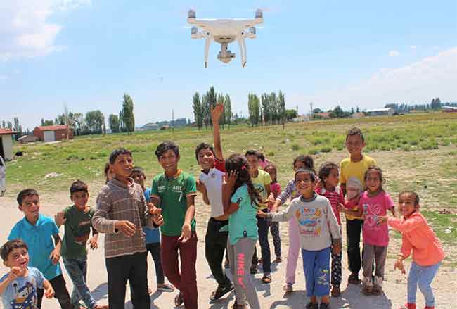 Eskişehir'e Şanlıurfa'dan mevsimlik işçi olarak gelen ailelerin çocuklarının, hayatlarında ilk kez drone görmesiyle yaşadıkları şaşkınlık ve sevinç kameralara yansıdı