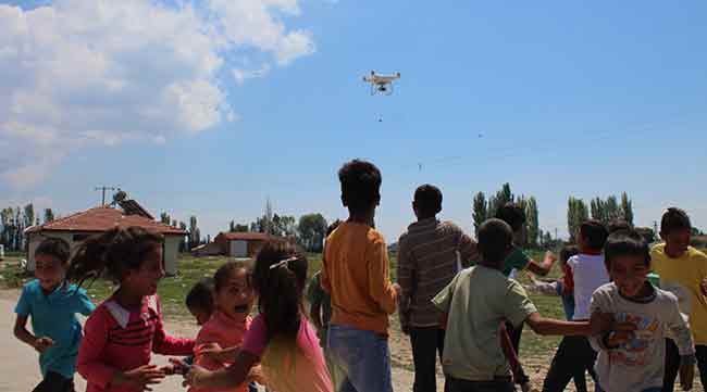 Eskişehir'e Şanlıurfa'dan mevsimlik işçi olarak gelen ailelerin çocuklarının, hayatlarında ilk kez drone görmesiyle yaşadıkları şaşkınlık ve sevinç kameralara yansıdı
