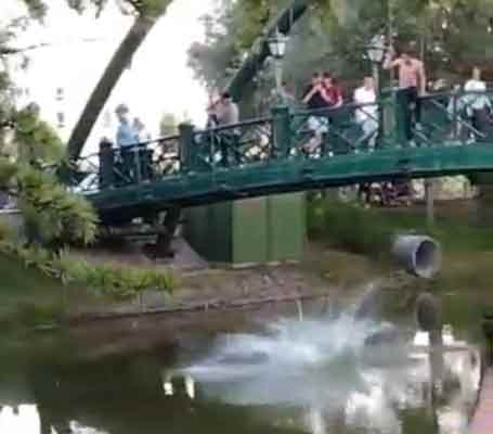 Kanlıkavak Parkı’nda bulunan yaya köprüsünden çaya atlayan çocukları bir vatandaş cep telefonu kamerası ile kaydetti.