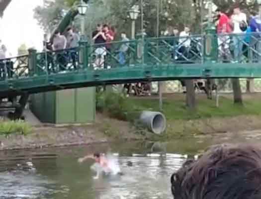 Çevredeki vatandaşların hiç birisi uyarıda bulunmazken, videoda duyulan alkış sesleri “Pes” dedirtti.