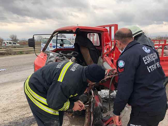Kaza, Tepebaşı’na bağlı Sütlüce mahallesi İstiklal caddesinde meydana geldi. Bünyamin A., (50) idaresindeki 26 AF 356 plakalı kamyonet ile Ali E.’nin (25) kullandığı 26 UH 093 plakalı kamyonet kafa kafaya çarpıştı. Sürücü Bünyamin A., kullandığı araç ile Eskişehir Teknik Üniversitesi kavşağında karşı şeride geçtiği iddia edildi.