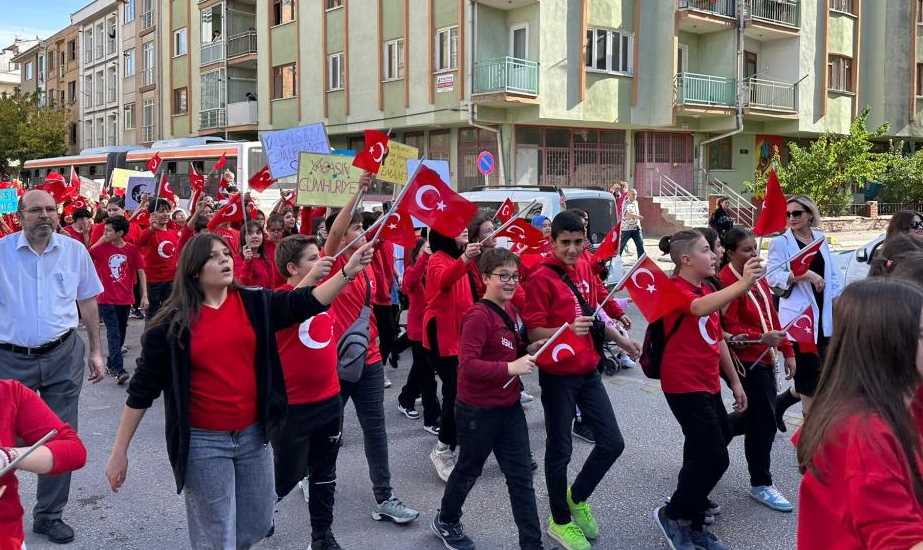 Öğrenciler, sergilenen dans gösterisinin ardından dikkatleri toplamak ve Cumhuriyet Bayramı’nı vatandaşlar ile birlikte yaşamak maksadıyla okuldan çıkarak, Seylap Caddesi üzerinden, Yılmaz Büyükerşen Bulvarı’na kadar yürüyüş gerçekleştirdi.