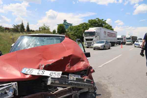 En arkadan gelen İsmail Güngör idaresindeki 26 ES 858 plakalı otomobil ise duramayarak öndeki araca çarptı. Kaza sonucu araçlarda maddi hasar meydana gelirken, 7 kişi yaralandı.