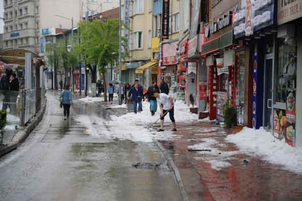 Eskişehir'de şiddetli yağış ve dolu, hayatı olumsuz etkiledi. Kentte öğleden sonra aniden bastıran dolu ve sağanak nedeniyle bazı cadde ve sokaklarda su birikintileri oluştu, yayalar ve sürücüler zor anlar yaşadı.