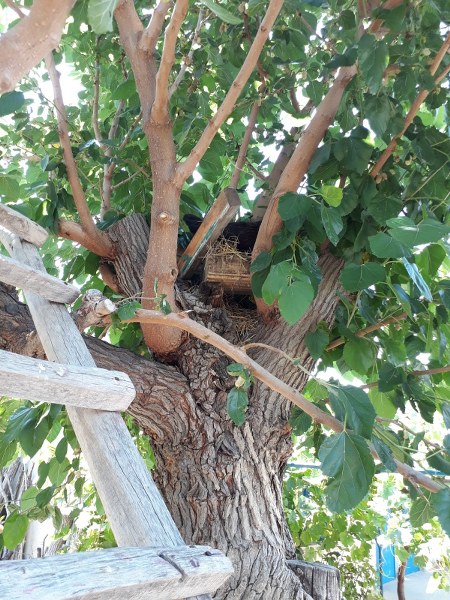 Kayakent Mahallesinde yaşayan Ahmet Yılmaz, beslediği tavukların yumurtasını bulamıyordu. Dut yemek için bir gün ağaca tırmanan Yılmaz, ilginç bir görüntüyle karşılaştı.