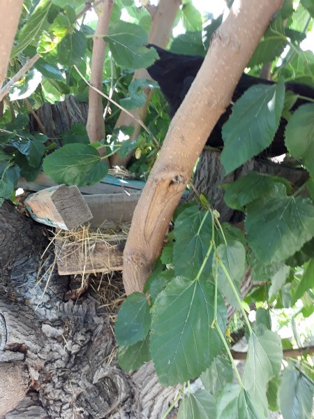 Eskişehir'in Günyüzü ilçesinde Ahmet Yılmaz isimli bir üretici, sürekli ağaca yumurtlayan tavuğunu vazgeçiremeyince çareyi ağaca folluk yapmakta buldu.