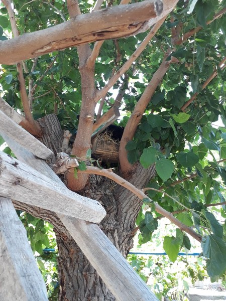 Eskişehir'in Günyüzü ilçesinde Ahmet Yılmaz isimli bir üretici, sürekli ağaca yumurtlayan tavuğunu vazgeçiremeyince çareyi ağaca folluk yapmakta buldu.