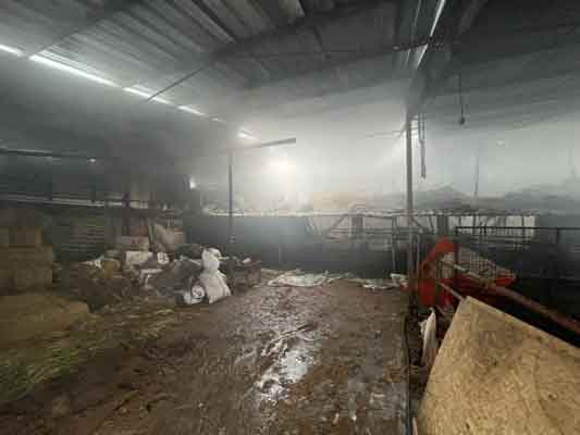 Eskişehir’de dün gece meydana gelen ve yaklaşık 80 hayvanın telef olduğu ağıl yangınında hasarın boyutu gün ışığıyla gözler önüne çıktı. Ağılda meydana gelen hasar drone ile görüntülendi. Sabah saatlerinde ağıldan tekrar dumanların yükselince itfaiye ekipleri soğutma çalışmalarına yeniden başladı.
