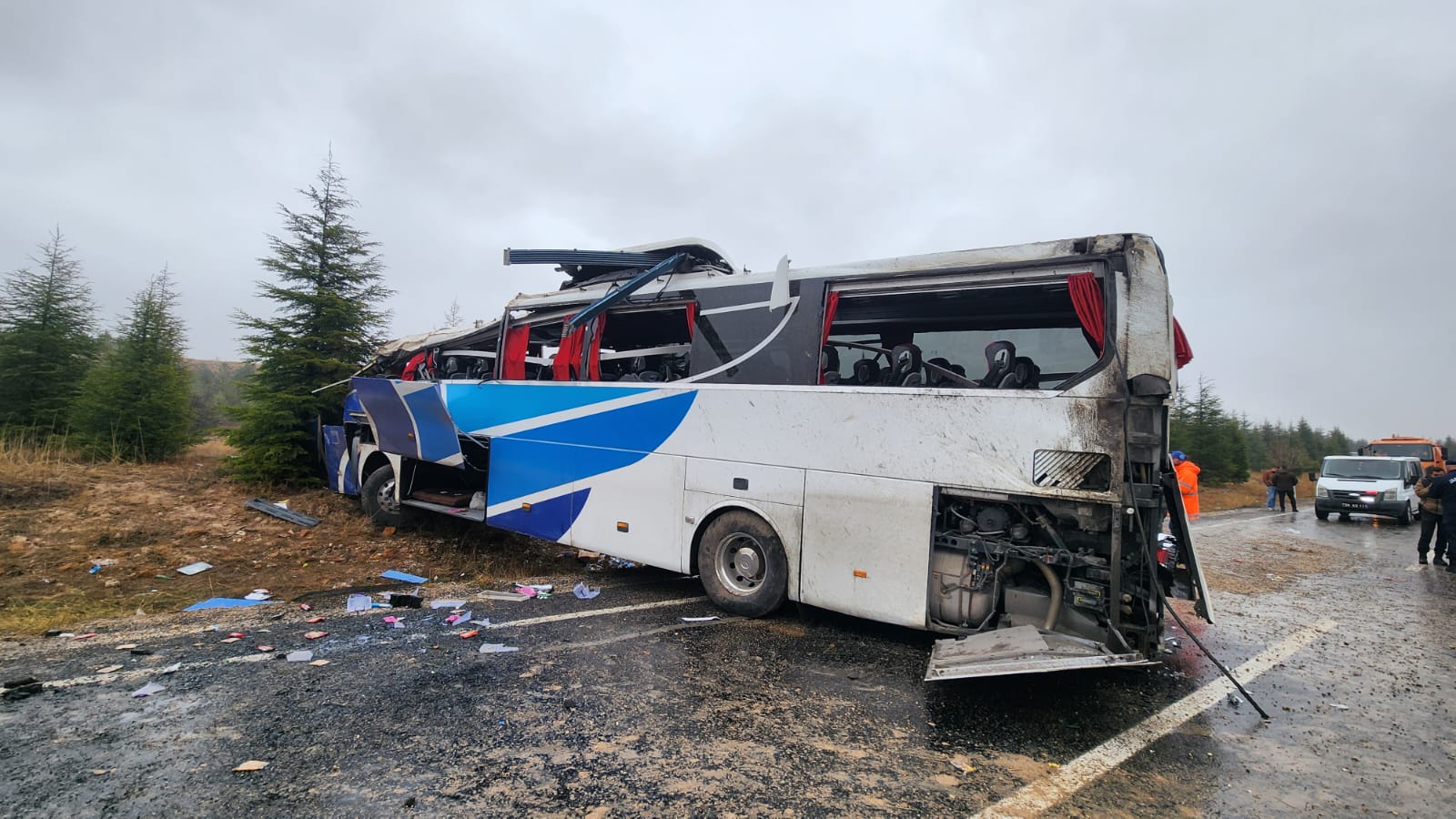 Eskişehir-Seyitgazi yolunda sabah saatlerinde meydana gelen trafik kazasında 1 kişi hayatını kaybetti, 41 kişi ise yaralandı. Alanya'dan Bursa'ya gitmekte olan yolcu otobüsü, sabah saat 07.55’te etkili olan yağış nedeniyle kontrolden çıkarak takla attı. Kazanın ardından 2 otobüs şoförü ve 1 muavinle birlikte yaralılar, çevredeki hastanelere sevk edilerek tedavi altına alındı. Kazanın meydana geldiği yer, Seyitgazi ilçesinin 16. kilometresi olarak belirlendi. Edinilen bilgilere göre, kazada hayatını kaybeden kişinin 56 yaşındaki Nihat Yüceler olduğu öğrenildi. Yaralıların tedavi süreçleri devam ederken, polis ve jandarma ekipleri kazanın ardından güvenlik önlemleri alarak yolun diğer araçlar için güvenli geçişini sağladı. Savcının olay yerindeki incelemelerini tamamlamasının ardından, kaza yapan otobüs vinç yardımıyla yoldan çekildi. Karayolları ekipleri, kazanın ardından temizlik çalışmalarına başlarken, otobüsün kaldırılması sırasında güvenlik amacıyla yol trafiğe kapatıldı. Çalışmaların tamamlanmasının ardından yolun yeniden trafiğe açılması bekleniyor. Kaza ile ilgili soruşturma devam ediyor. (HABER MERKEZİ)