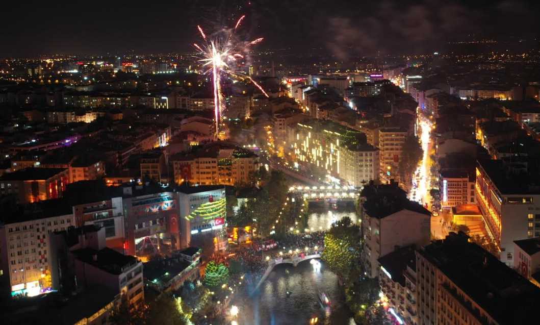 Cumhuriyet’in 100. kutlamaları çerçevesinde Eskişehir Büyükşehir Belediyesi tarafından Porsuk Çayı’nda flyboard, ışık gösterileri ve marşlar eşliğinde düzenlenen Fener Alayı büyük bir coşkuya sahne oldu. İnsan seline dönüşen kutlamalarda geceyi havai fişek gösterileri aydınlattı.