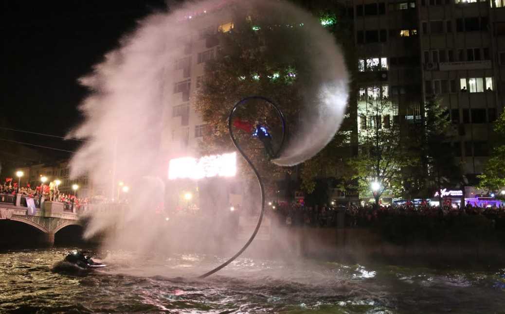 Cumhuriyet’in 100. kutlamaları çerçevesinde Eskişehir Büyükşehir Belediyesi tarafından Porsuk Çayı’nda flyboard, ışık gösterileri ve marşlar eşliğinde düzenlenen Fener Alayı büyük bir coşkuya sahne oldu. İnsan seline dönüşen kutlamalarda geceyi havai fişek gösterileri aydınlattı.