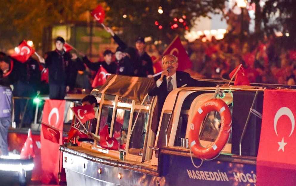 Kutlamalar hep bir ağızdan söylenen şarkı ve marşlar eşliğinde devam ederken geceyi havai fişek gösterileri aydınlattı.