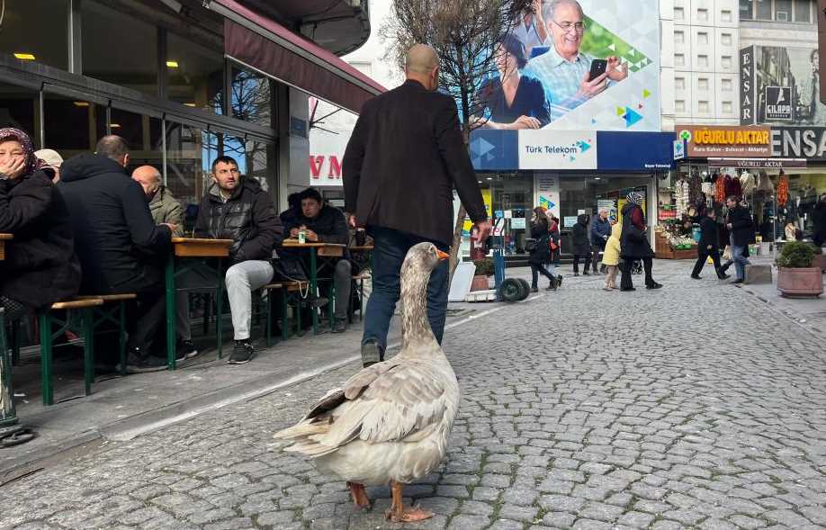 Eskişehir’e 12 yıllık Cango isimli kazı ile gelen Yılmaz Evcenler, kenti dolaştıktan sonra meşhur çi böreğin tadına baktı. Kocaeli’nde yaşayan ve 12 yıldır 'Cango' isimli kazını biran bile yanından ayırmayan Yılmaz Evcenler, Eskişehir’i gezmeye geldi. Kentin turistik yerlerini boynunda papyon takılı kazı ile birlikte gezen Evcenler, insanların yoğun ilgisiyle karşılaştı. Yılmaz Evcenler kazı Cango ile birlikte Çi börek yedi. Çi böreği oldukça beğenen Evcenler ve Cango vatandaşlarla fotoğraf çekindikten sonra şehir turuna devam etti. İşte o görüntüler...