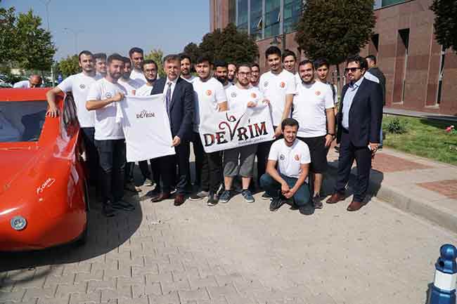 Eskişehir Osmangazi Üniversitesi’nde (ESOGÜ), 30 öğrencinin bir araya gelmesiyle yapılan elektrikli araca, Türkiye’nin ilk yerli otomobili olan ‘Devrim'in adı verildi.