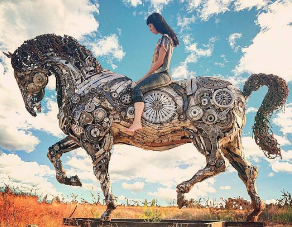 Kaynak: eskişehir haberleri, eskişehirli Cem Özkan, hurdadan heykeller, hurda at heykeli,