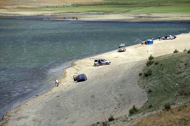 Eskişehir’de hafta sonunu doğayla iç içe geçirmek isteyenler oltalarını yanına alıp Keskin Barajı’nda balık tuttu.