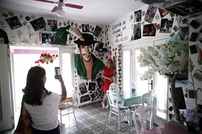 Eskişehir'de 25 yaşındaki ressam Mehmet Ateşli, iş yerlerinin duvarlarına Yeşilçam'ın unutulmaz sanatçılarının resimlerini işliyor.