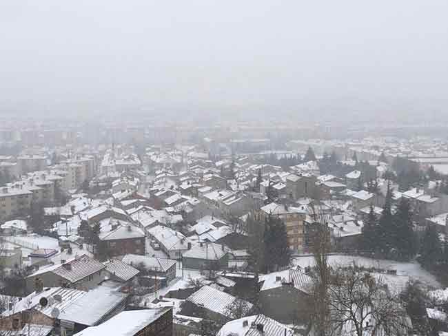 Eskişehir’de fırtına ile birlikte aniden başlayan şiddetli kar yağışıyla birlikte kent merkezi kısa süre içerisinde yeniden beyaza büründü.