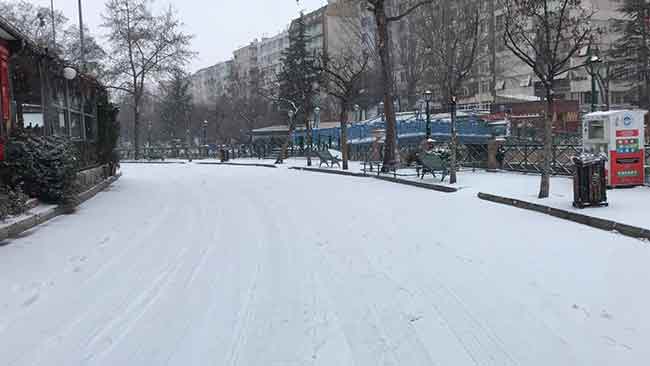 Eskişehir’de fırtına ile birlikte aniden başlayan şiddetli kar yağışıyla birlikte kent merkezi kısa süre içerisinde yeniden beyaza büründü.