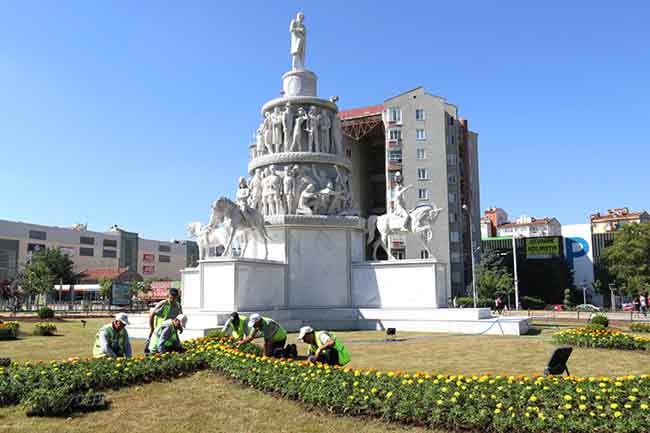 Eskişehir Büyükşehir Belediyesi’nin kendi seralarında yetiştirdiği rengarenk çiçekler havaların ısınmasıyla birlikte cadde, bulvar ve meydanlardaki yerlerini almaya başladı