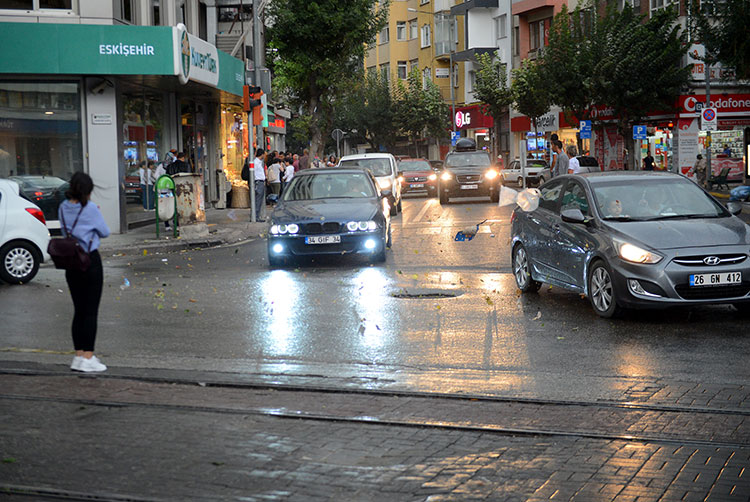 Eskişehir'de aniden bastıran yağmur ve fırtına Eskişehirlilere zor anlar yaşattı.
