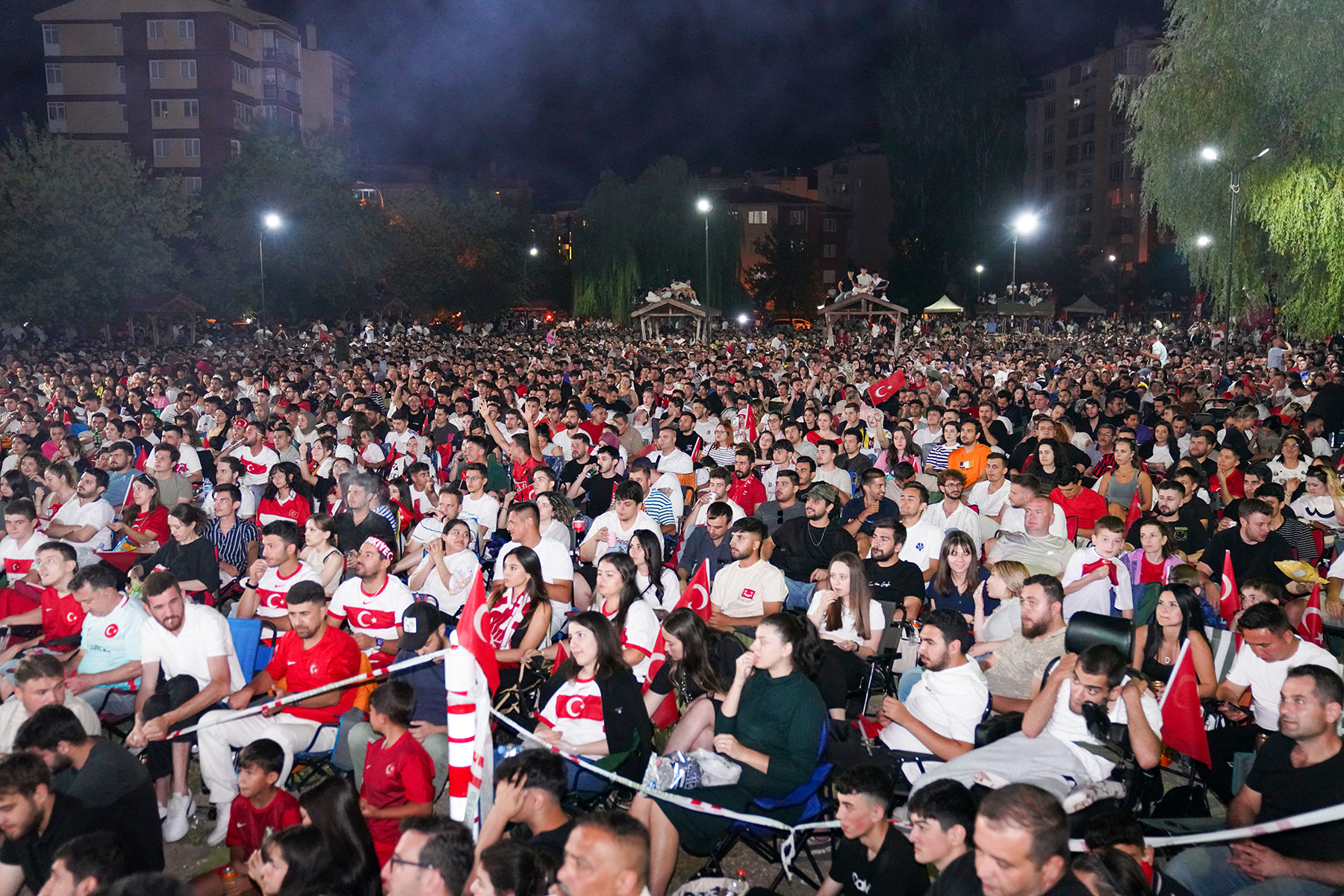 Eskişehir'de Tepebaşı Belediyesi tarafından ETİ Caddesi kum sahada kurulan ekranda 10 bine yakın Eskişehirli milli maç heyecanını Tepebaşı’nda yaşadı. A Milli Takımımız, EURO 2024 Son 16 Turu'nda Avusturya’yı 2-1 mağlup edip çeyrek finale yükselerek büyük bir gurur yaşattı.