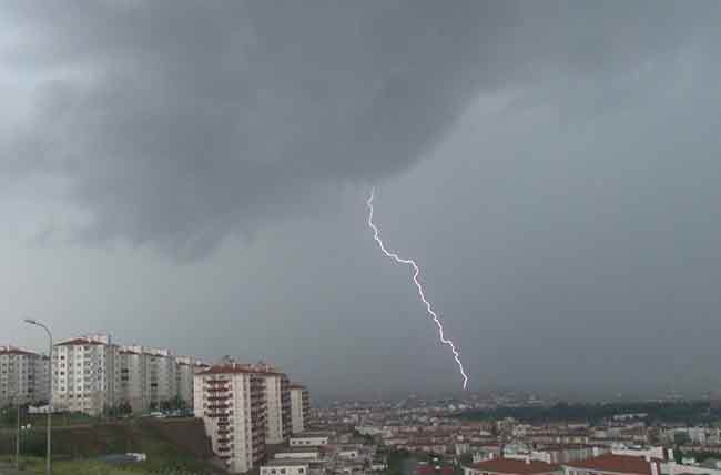 Eskişehir’de etkili olan sağanak yağış ile birlikte beliren şimşek ve yıldırımlar gökyüzünü aydınlattı.