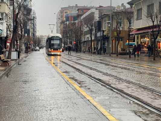 Eskişehir’de sabah saatlerinde sağanak yağış etkili olurken hava sıcaklığı da hissedilir bir biçimde düştü.
