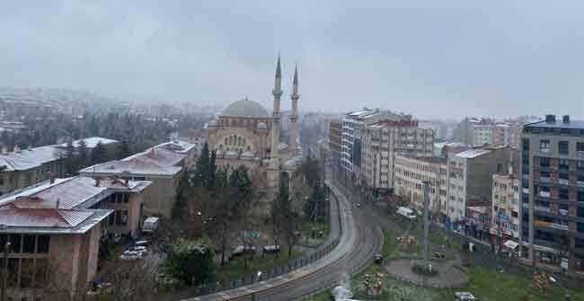 Eskişehir’de dün gece başlayan ve saatlerdir devam eden kar yağışı, çatıların beyaza bürünmesine sebep olurken, henüz zeminde tutmadı ve ıslak bir görüntü oluşturdu, yüksek kesimler ise karla kaplandı.