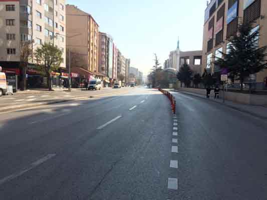 Eskişehir ve tüm Türkiye'de koronavirüs ile mücadele kapsamında uygulanması kararlaştırılan hafta sonları sokağa çıkma kısıtlaması dün akşam saat 21:00 itibarıyla başladı. Eskişehir sokakları kısıtlamanın ilk gününde bomboş kaldı. (Fotoğraflar: Esra Ünlü)