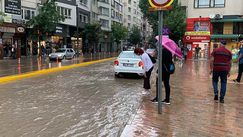 Eskişehir’de aniden bastıran sağanak yağış vatandaşlara zor anlar yaşattı.