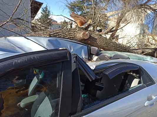 Eskişehir’de öğle saatlerinde başlayan ve şiddeti 89 kilometreye kadar ulaşan şiddetli rüzgâr sonucunda devrilen ağaç park halindeki otomobilin üzerine düşerek maddi hasara neden oldu.