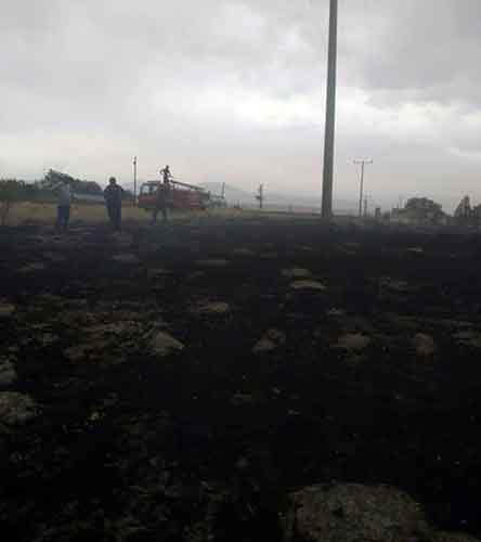 İlk önce Ankara’nın Polatlı’dan çıkan ve daha sonra bölgeye yayılan fırtına nedeniyle ilçenin Ayvalı mahallesinde elektrik kabloları birbirine değmesi sonucu oluşan kıvılcım yangına sebep oldu.