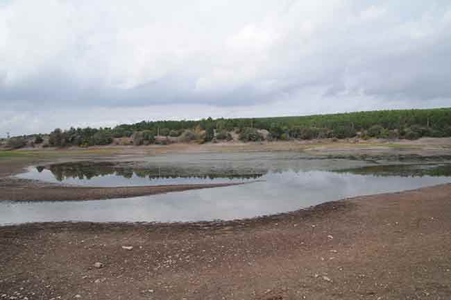 Yaz aylarında yağışların beklenen seviyenin altında olması nedeniyle suları çekilen göl, havandan görüntülendi