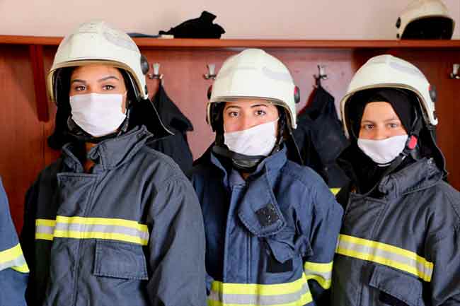 Eskişehir Büyükşehir Belediyesi İtfaiye Daire Başkanlığında staj yapan Kısmet Boran, Melisa Yavuz ve Muhibe Baytaroğlu, her gün gerçekleştirilen tatbikatlarla yangınlara müdahale için hazırlanıyor.
