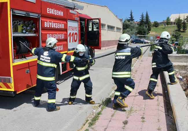 Eskişehir Büyükşehir Belediyesi İtfaiyesi'nde staj yapan Kısmet Boran, Melisa Yavuz ve Muhibe Baytaroğlu, her gün gerçekleştirilen tatbikatlarla yangınlara müdahale için hazırlanırken, kadınların da bu meslekte rahatlıkla söz sahibi olabileceğini gösteriyor.