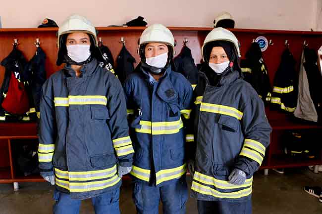Eskişehir Büyükşehir Belediyesi İtfaiyesi'nde staj yapan Kısmet Boran, Melisa Yavuz ve Muhibe Baytaroğlu, her gün gerçekleştirilen tatbikatlarla yangınlara müdahale için hazırlanırken, kadınların da bu meslekte rahatlıkla söz sahibi olabileceğini gösteriyor.