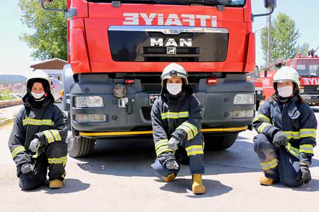 Eskişehir Büyükşehir Belediyesi İtfaiyesi'nde staj yapan Kısmet Boran, Melisa Yavuz ve Muhibe Baytaroğlu, her gün gerçekleştirilen tatbikatlarla yangınlara müdahale için hazırlanırken, kadınların da bu meslekte rahatlıkla söz sahibi olabileceğini gösteriyor.