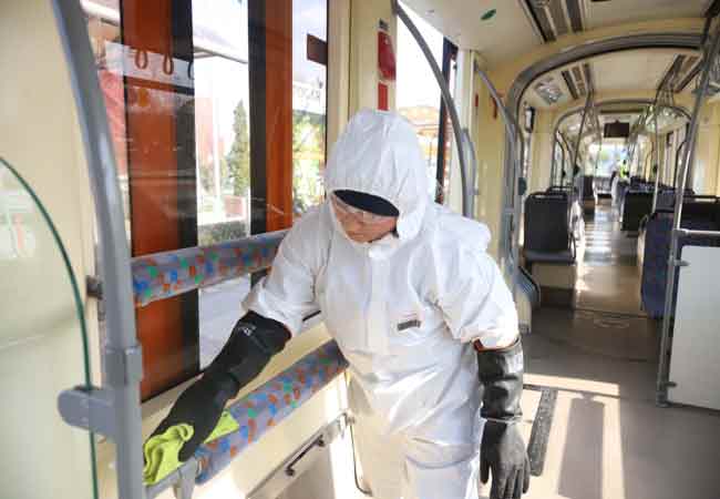 Mart ayı başından itibaren 'Corona Virüs ile Mücadele Eylem Planı' kapsamında Covid-19 virüsüne karşı çeşitli önlemler alan Eskişehir Büyükşehir Belediyesi, düzenli olarak tramvaylarda, otobüslerde ve duraklarda gerçekleştirdiği dezenfeksiyon çalışmaları için mobil ekipler oluşturdu.