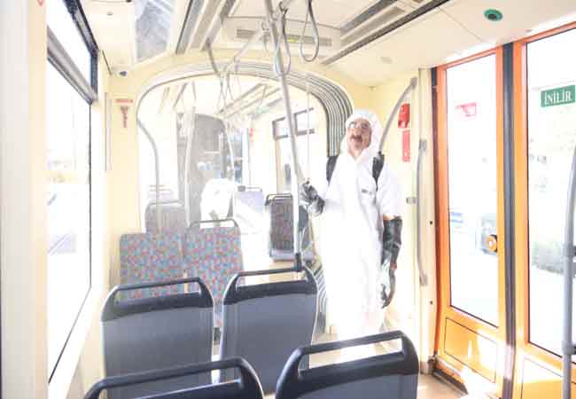 Mart ayı başından itibaren 'Corona Virüs ile Mücadele Eylem Planı' kapsamında Covid-19 virüsüne karşı çeşitli önlemler alan Eskişehir Büyükşehir Belediyesi, düzenli olarak tramvaylarda, otobüslerde ve duraklarda gerçekleştirdiği dezenfeksiyon çalışmaları için mobil ekipler oluşturdu.