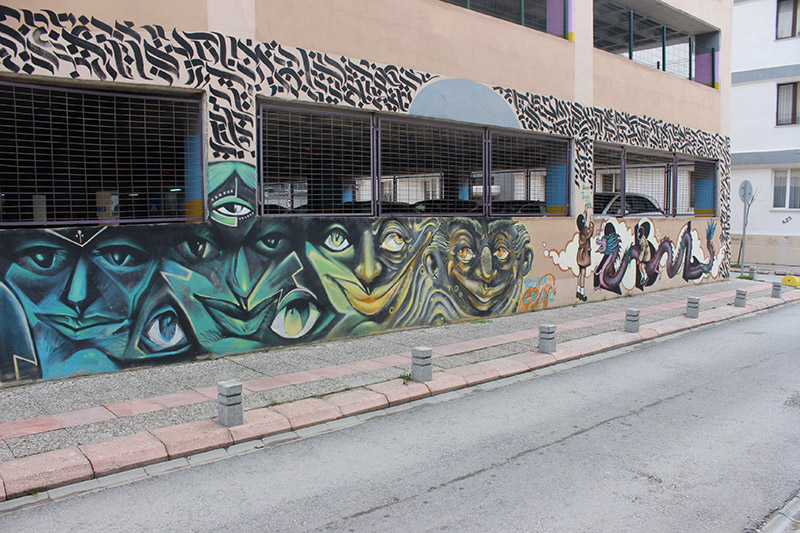 Apartman yöneticilerinin de müsaade ettiği grafiti resimlerini üniversiteli sokak sanatçılarının yaptığı ifade edildi. Bir otoparkın duvarlarına yapılan grafiti resimleri gözlere çarptı.